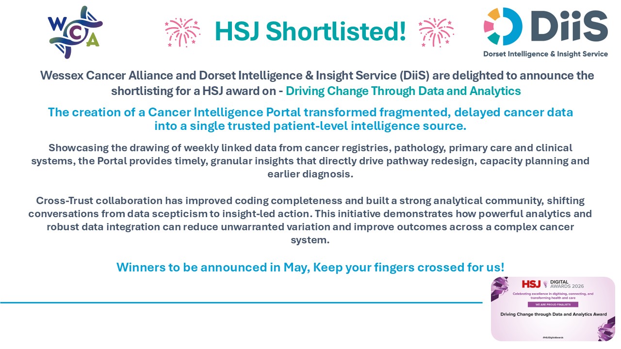 Our Cancer Intelligence Portal in collaboration with Wessex Cancer Alliance has been shortlisted in the category: