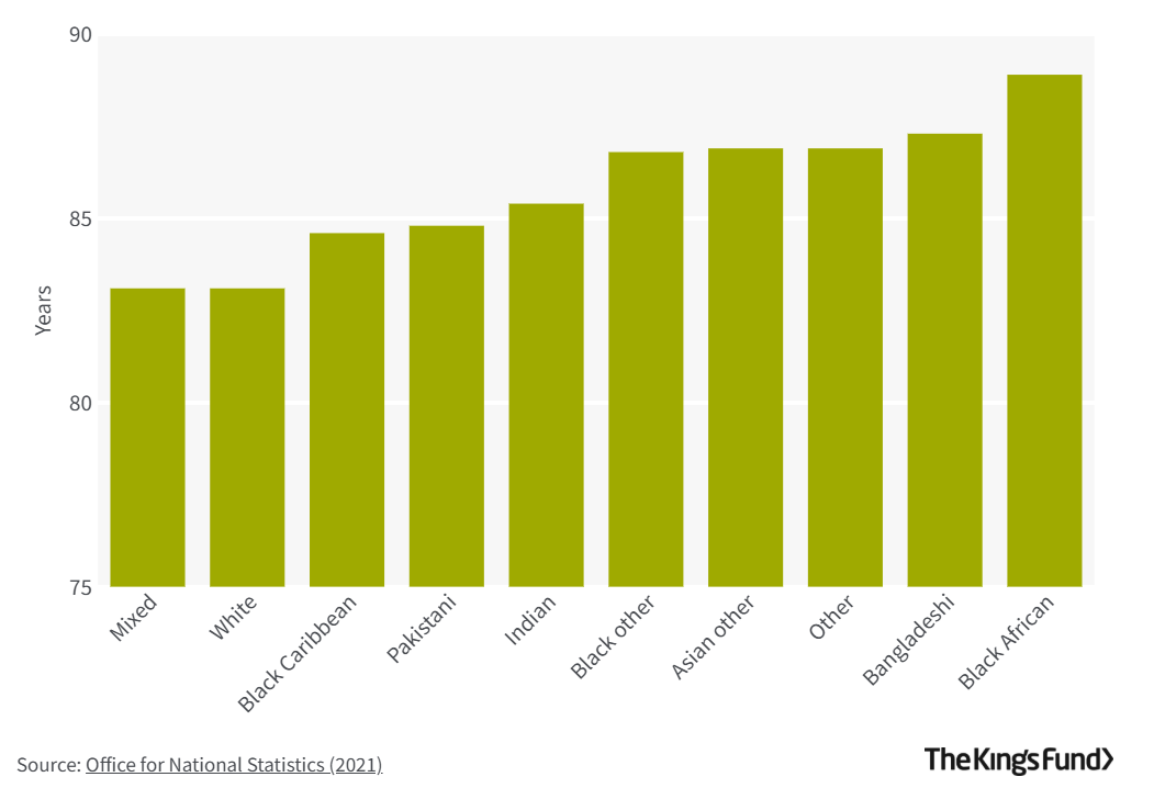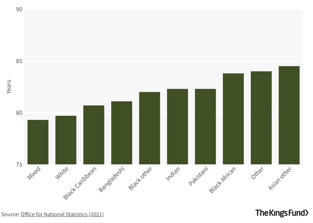 Figure 6: Life expectancy by ethnic group, females