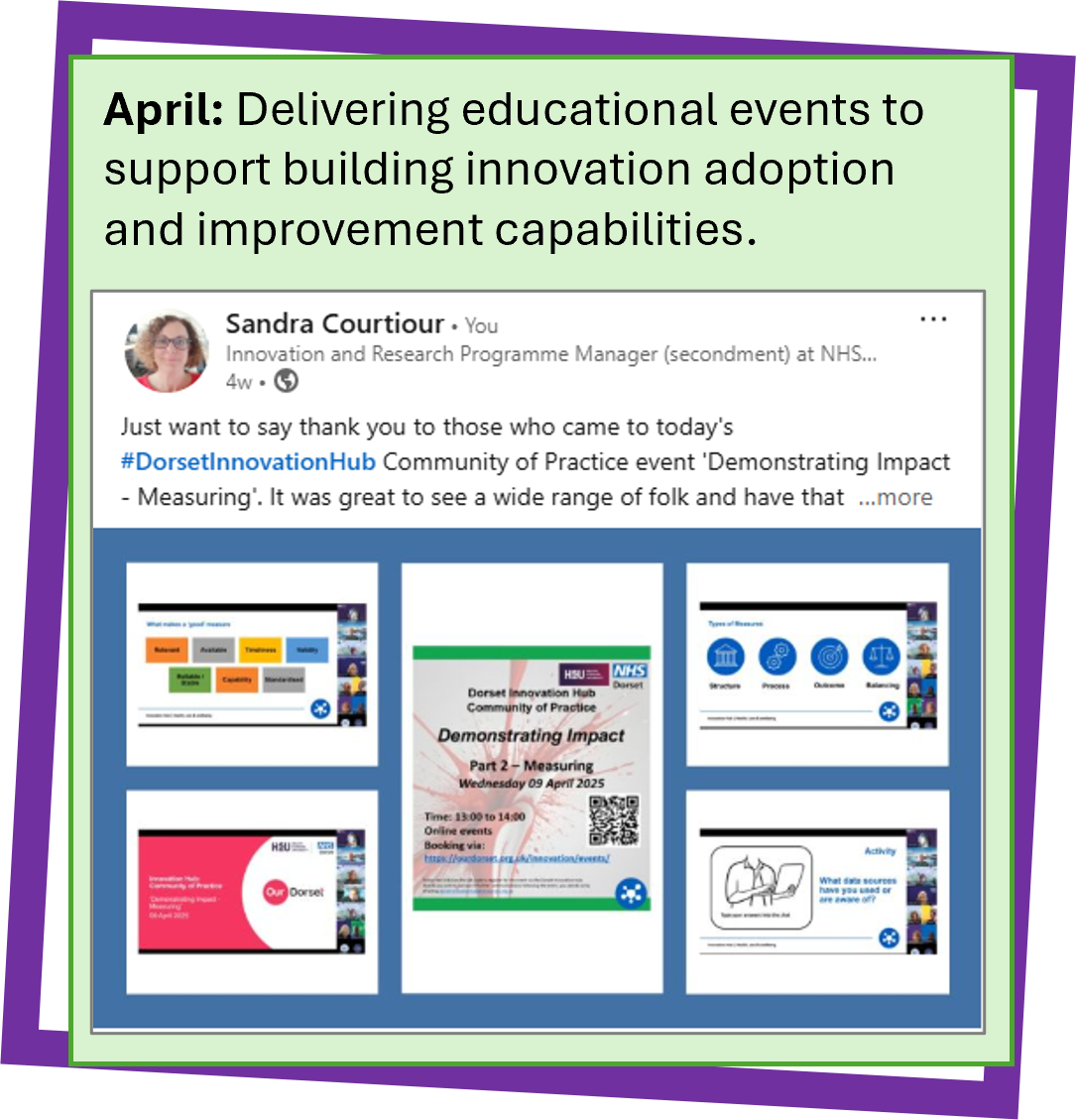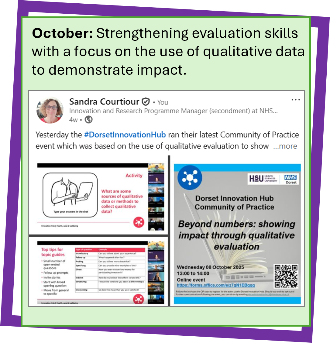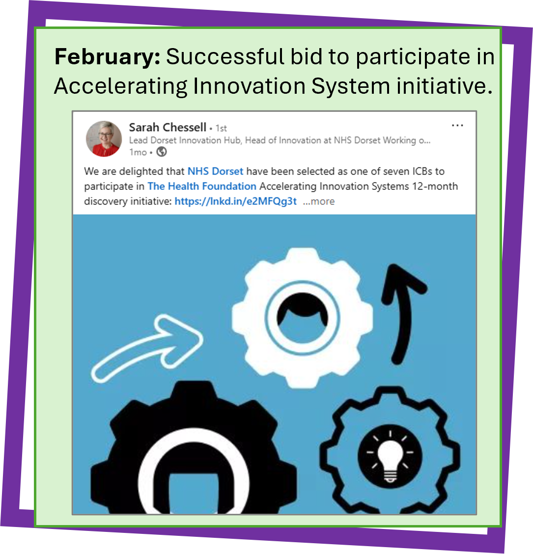 As we welcome the start of 2026, we pause to reflect on what we’ve achieved through the strategic system partnership work of the Dorset Innovation Hub. As you will see, we believe through learning together with a collaborative people centred approach we are creating an innovative system culture that can help to make Dorset the healthiest place to live. There have been so many great moments over the year, so we hope you enjoy our selection of 2025 ‘at a glance’.